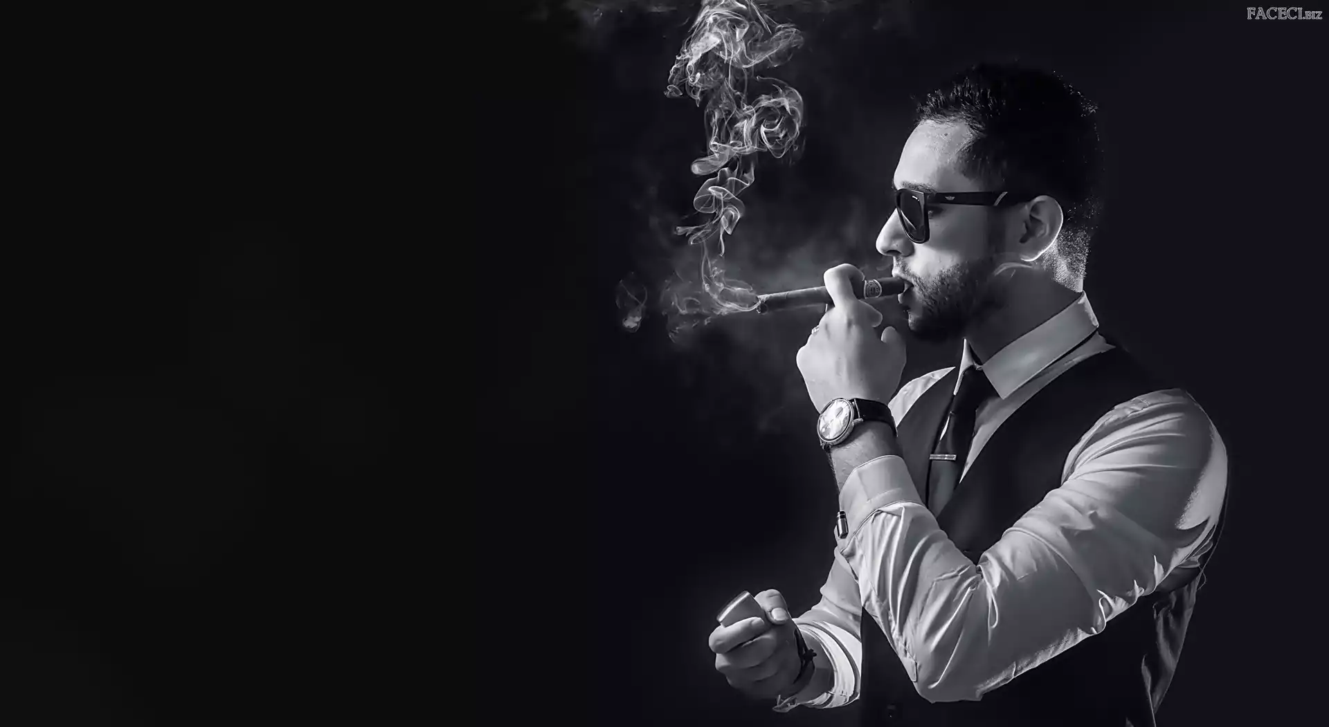 Okulary, Dym, Mężczyzna, Cygaro - faceci.biz